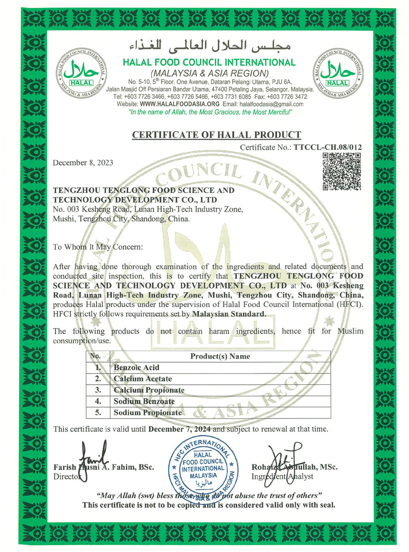 滕州市騰龍食品科技發(fā)展有限公司坐落在山東省滕州市木石鎮(zhèn)魯南高科技化工園區(qū),成立于1996年,前身是滕州市騰龍化工有限責(zé)任公司,公司專業(yè)生產(chǎn) 苯甲酸,苯甲酸鈉,丙酸鈣,丙酸鈉和醋酸鈣等系列產(chǎn)品。